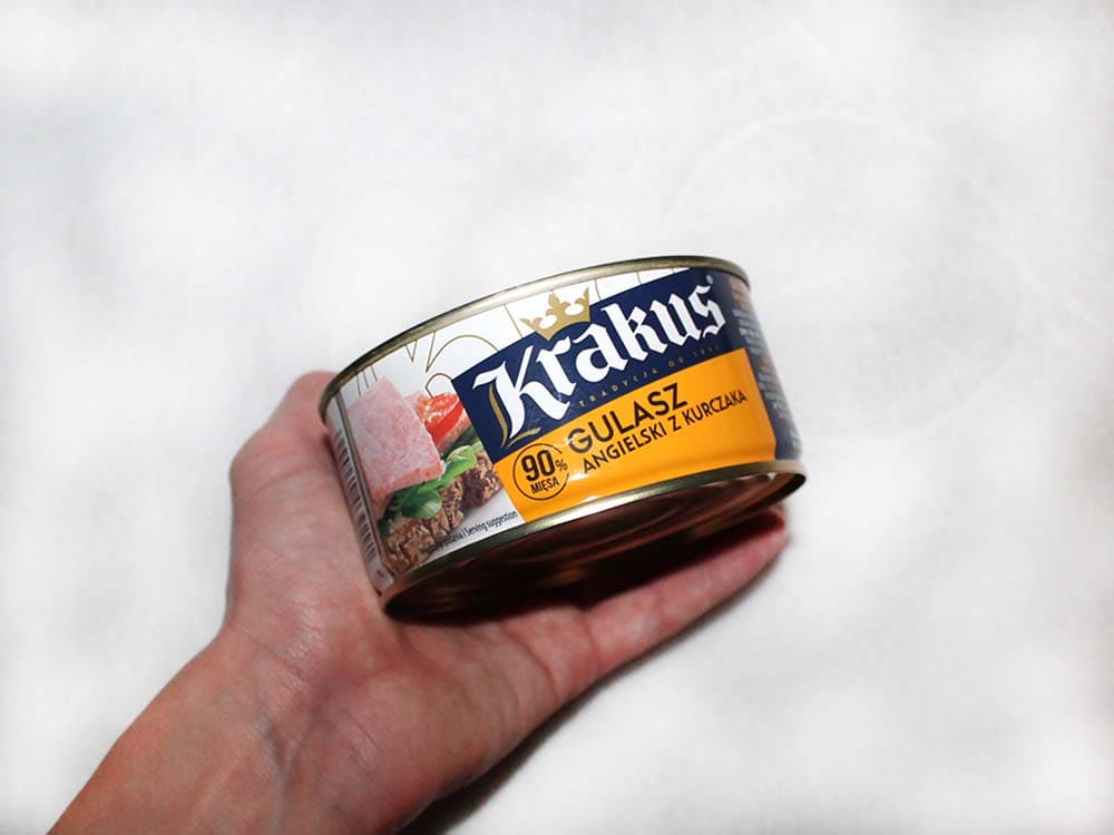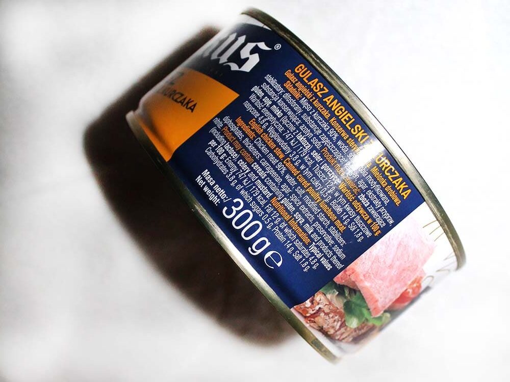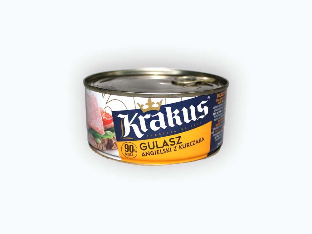 Это консервированный гуляш «по-английски». Очень популярный в Польше деликатес – отличное качество и приятный аромат. Продукт содержит 90% натуральной курятины, потому его вкусовые качества на высоком уровне. Гуляш по-английски имеет очень натуральный и нежный вкус.