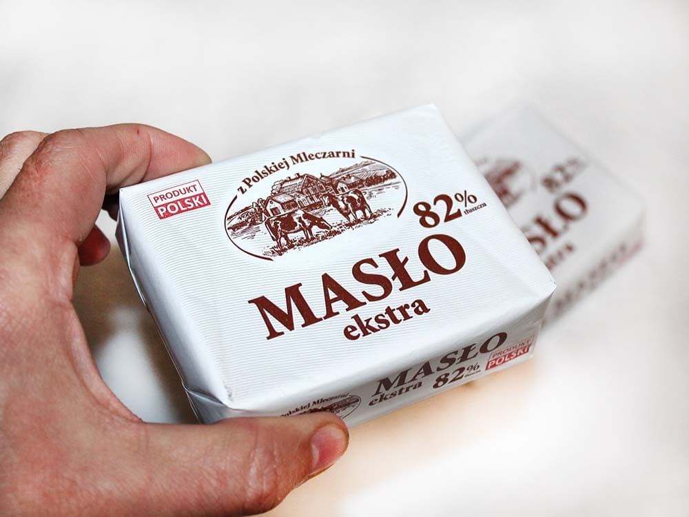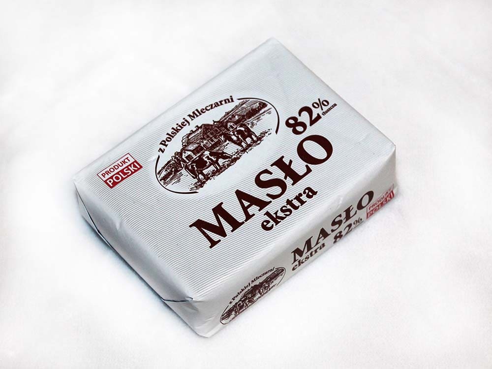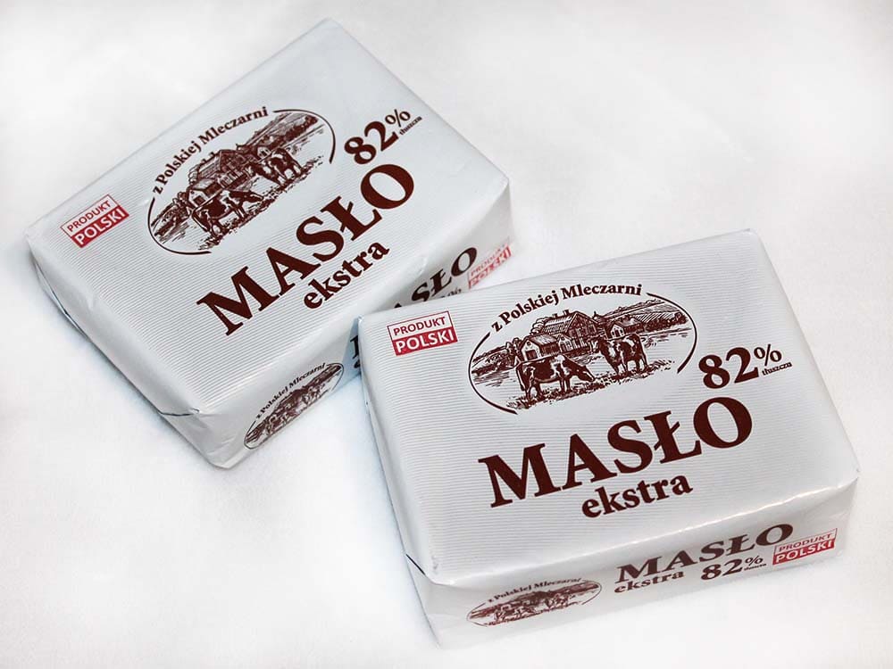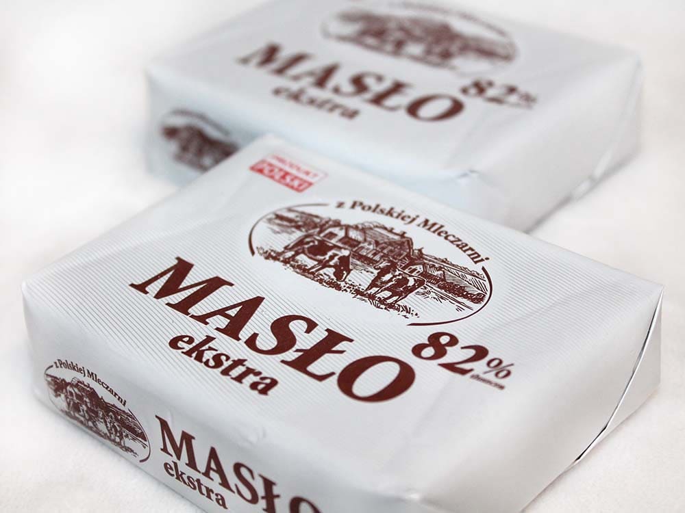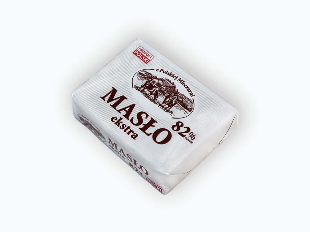 Сливочное масло z Polskiej Mleczarni Maslo Ekstra изготовлено в Польше.