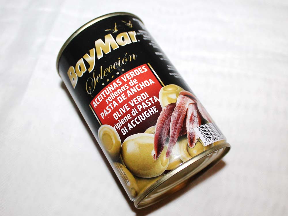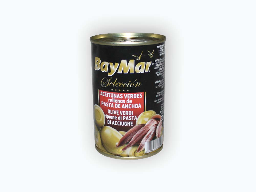 Оливки фаршированные анчоусом BayMar Seleccion. Продукт создан в Испании.